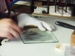 あらかじめカットしてあるガラスを、お酢で拭き汚れをとります。