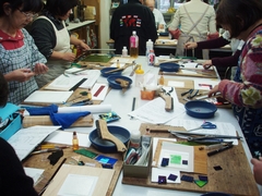 どなたも楽しそうにデザインし、楽しそうにガラスの色あわせをしていました。