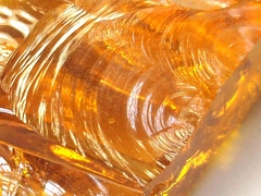 わたしたちがやっている、鉛線やコパーテープで作るステンドグラスの場合は、こういった貝の形の欠けは、「ハマ欠けした」、とか、「ハマが入った」などと言って、失敗したことになります。こうなると使わずカットしなおすのが常です。そこだけ光ってしまって目立つし、ハマ欠けの形によっては、焼成したり半田付けの際に熱割れすることがあるからです。