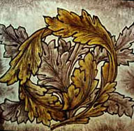 これは、体験コースに使っていた、ウィリアム・モリスのデザインです。(この体験コースは現在はありません。) 葉のデザインの一部を使いました。