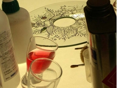 ●私達はいつもは、酢か水でグリザイユやエマイユを溶きますが、今回はオイル溶きのレクチャー&デモ