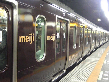 不景気で車輌全部一社の広告というのも、最近だいぶ減って見かけなくなったので、茶色とはいえ、目立ちますよね。