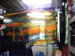 その後、ランバーツの定番のガラス棚へ。同じ番号でも一枚一枚流れと色合いが違うので、これも一枚一枚出してみて、自分好みの部分を選びます。皆さん、イメージと合ったガラスがあったようで、ニコニコしていました。