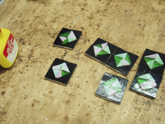 下の写真は、ガラスをカットして重ね、焼く準備が整ったところ(左)。
