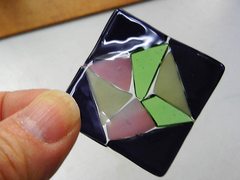 窯で焼いてフュージングしたところ〈右〉。