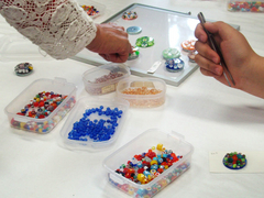 第31回 びどりを作品展 【2011年 9月19日(月・祭) 〜25日(日)】 の会期中、9/23日は、先着10名で 「ベネチアンガラスのマグネット」 の制作体験学習をいたしました。受付開始から10分もたたないうちに定員となってしまいました。盛況で嬉しかったですが、楽しみにされていた方は残念でした。みきデザイン工房の方では随時体験学習を受け付けておりますので、お問い合わせください。