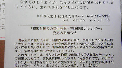 なお、「三陸復興カレンダー」 が増刷され、販売しているという、お知らせも入っていました。