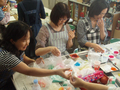 ステンドグラスと同様で、「即効決断型」「創造力モリモリ型」とイロイロなタイプの方が多かったですが、今回は基礎編だと言っているのに、1つ作っただけで、2個目にはドンドン応用編をしたがっちゃって、「こんなのは?」「あんなのは?」と… 話しは尽きませんでした。ステンドグラスは一つ作るのに時間がかかるので、結果がすぐに見れるものもたまにはいいですね。