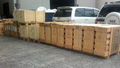 でも、駐車場に着くなり、“そそる” 木箱が並んでいて、一気にアドレナリンが体中を駆け回り始めました。