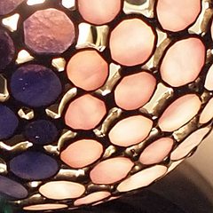 紫のガラスを散りばめた丸いシェードは葡萄の実、ランプベースにも葉を絡ませた森の葡萄のランプに灯がともると、ゆらゆら揺れて、影も素敵に映ります。