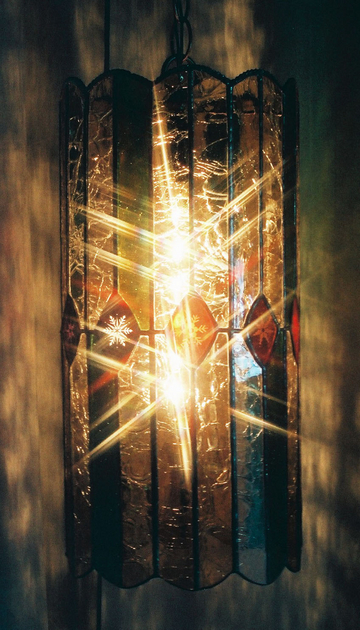 クラッケルガラスとは、光の乱反射をさせるため、制作の段階でわざと職人がヒビを入れてつくったアンティーク手法で作ったガラス。