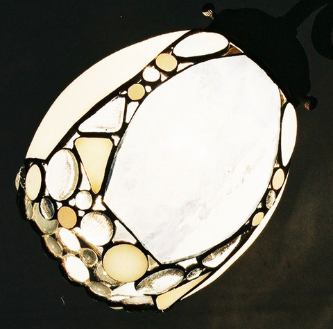 石膏で型どりしてスランピングした白系の3種のガラスを使用。ナギットも大小白系とクリアガラスをフュージングして作成し、宝石のように散りばめました。美しい夢の世界でゆっくり眠れますように・・・