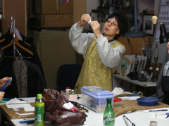 さっそく先週の土曜日、嶋本先生が、お二人同時に向い合せで、ガラスカットの練習をしました。