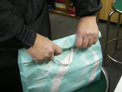 (この紙袋を何度も使っているので、だいぶくたびれてきました)