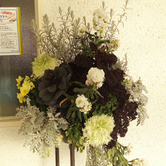 廊下で、知り合いのハンギング作家さんにプレゼントしていただいた、春らしい草花が皆さんをお出迎えしています。