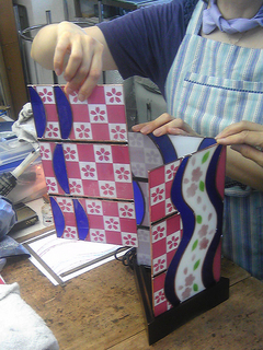 特に大変だったのはガラスパウダーを使ったフュージングで、デザインや型紙の大きさを変えたり、パウダーの混合具合や技法を変えたりと何度も何度も試作をしました。その甲斐あって、満足の仕上がりとなりました。