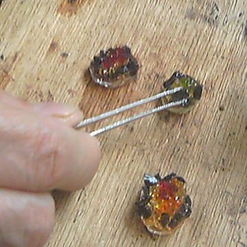 これは、花芯の部分を作っているところです。これを窯で焼いてフュージングして作りました。