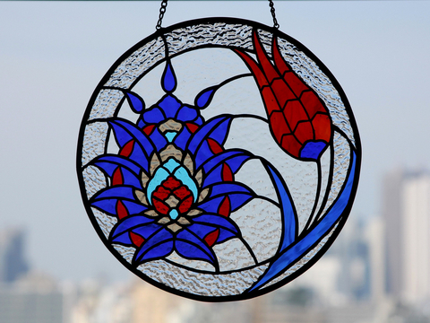 トルコのモスクの古典的なタイル柄のモチーフをステンドグラスにした、生徒さんの作品です。
