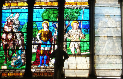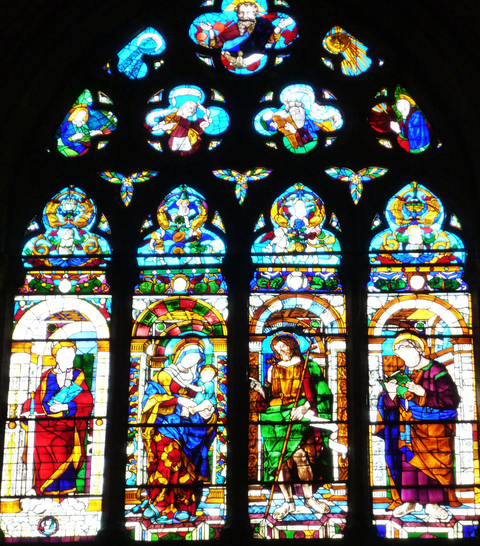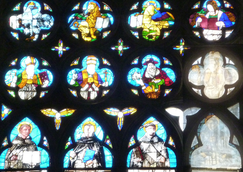特に有名なのは、右の袖廊のこのステンドグラスです。