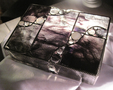 前回のブログで 「月」 をテーマにした作品をご紹介いたしましたし、今晩、2013年10月19日(土)は満月ですので、月の雫のような? ステンドグラスの箱をご紹介します。(第33回 びどりを作品展 の出品作) あいにく、今晩は曇っていて残念ながら月は見えませんね。