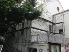 7月には、耐震補強工事のために聖堂内外に足場が組まれ、工事が始まりました。