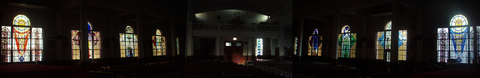 上の写真は、身廊の左右のステンドグラスです。