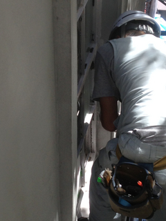 台風で、工期が遅れるかと思ったけど、何とかコーキングも終わりました。