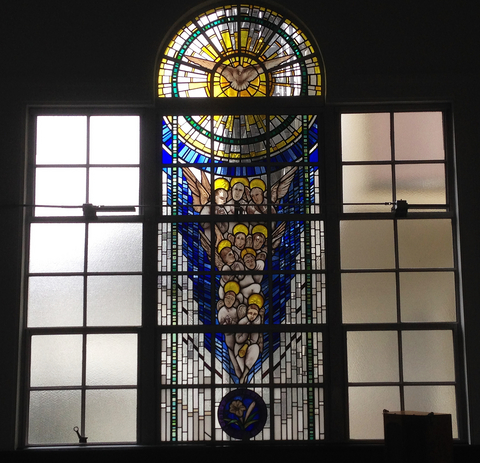 以前の豪華なステンドグラス窓をご存じの方には、質素になった、さびしくなった… と思う方も多いかもしれません。しかし、将来的にステンドグラス窓を守るために、こうして多くの心と手が加わったことを、覚えておいてくださると嬉しく思います。