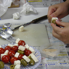 なかちゃんに手伝ってもらって、高橋講師が作っているオードブルは、題して 「イタリアの思い出」。