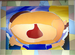 少々、ステンドグラスにするには、難しい絵でしたが、そのお母様の心意気に打たれて、二つ返事でOKしました。