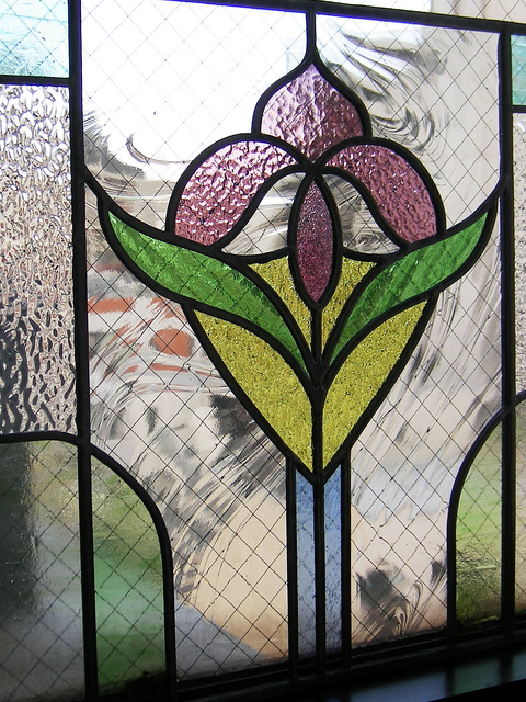 高窓の2枚のステンドグラス