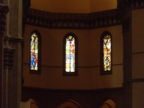 クーポラの下を通り過ぎ、祭壇の向こう側、後陣のステンドグラスです。