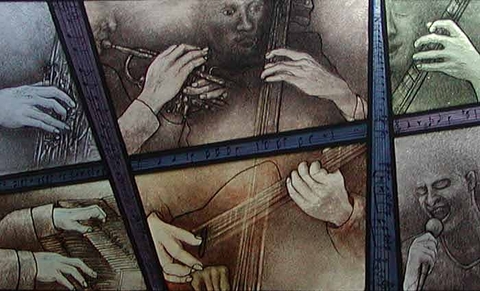 びどりを作品展の時に、 「眠れぬ夜のジャズ」 というタイトルで出品したパネルです。
