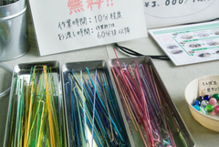 そして、ペンダントなどにする時に合わせるパーツをえらびます。綺麗な色がたくさんあり、ついつい千数百円弱買ってしまいました。