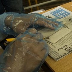 詳しく注意事項を聞きながら、ウエットフェルトに初めて触りました。