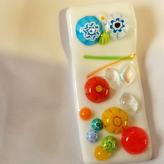 好きな色のガラス棒を3色選び、クルクルクルクル、バーナーの上で回しながら作るトンボ玉。