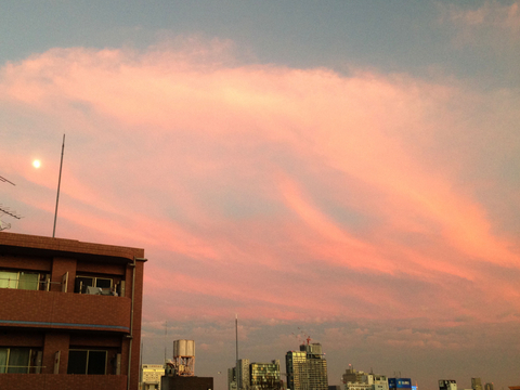 この頃は、15時40分頃には月がのぼりはじめるので、「夕焼けと月」 というめずらしいとりあわせになりました。