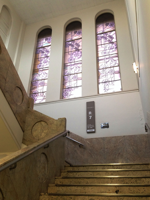 伊勢丹の本館の7階から屋上庭園に出る、第二号階段の途中にあるステンドグラスを見に行きました。