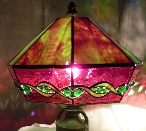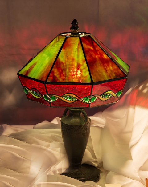 そこで、暖か〜い、赤とグリーンのランプをご紹介します。 (「ステンドグラスグループ びどりを 第34回作品展」 出展作)