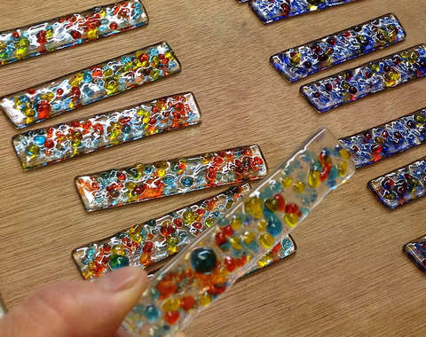 自分で作ったガラスカレットをフュージングして、パーツを作りました。