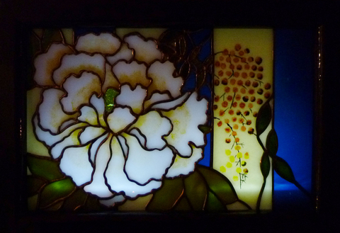 「牡丹と南天」のステンドグラス