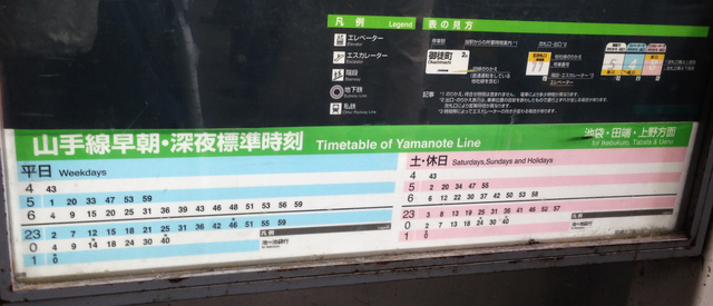 この写真は山手線の時刻表です。