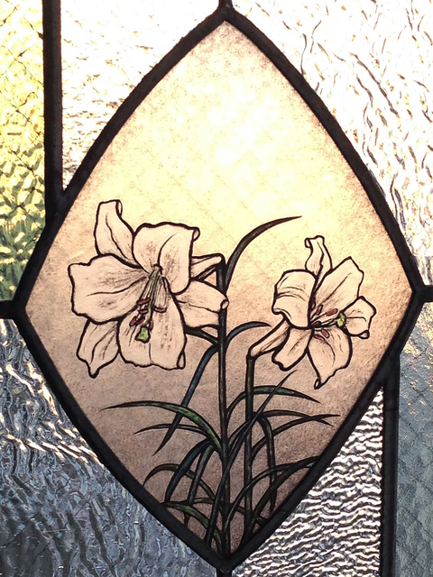 という奥様のご希望で、このようなシンプルなデザインのステンドグラスにしました。