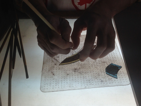 前回、前々回のブログで描いていた、絵付けのガラスのピースの