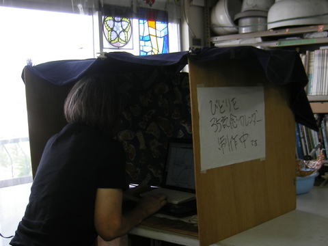 【びどりを 記念カレンダー 制作中です】 と貼り紙をしました。