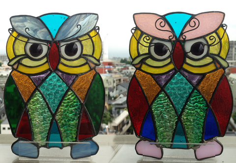 こんなステンドグラスのウインドウペンダントの写真を載せてみます。