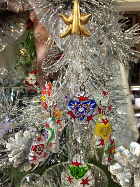 ツリーを飾っているオーナメントは、モレッティ社のミレフィオリなどを焼いて作りました。
