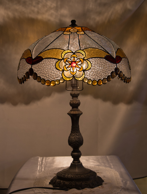 今日は、このランプをご紹介します。(「第35回びどりを作品展」 の出品作。)
