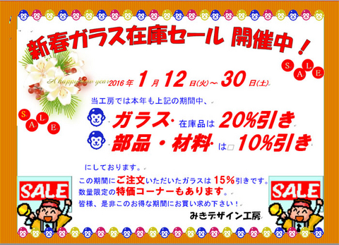 新春 ガラス・部材 セール 2016.1.12 (火)〜30(土)