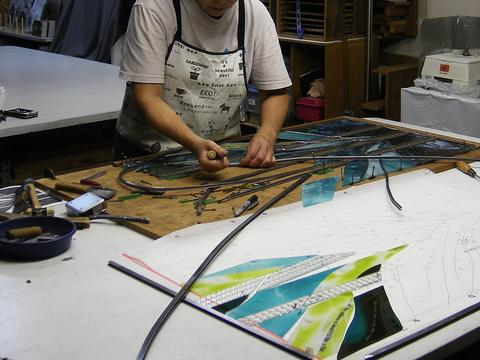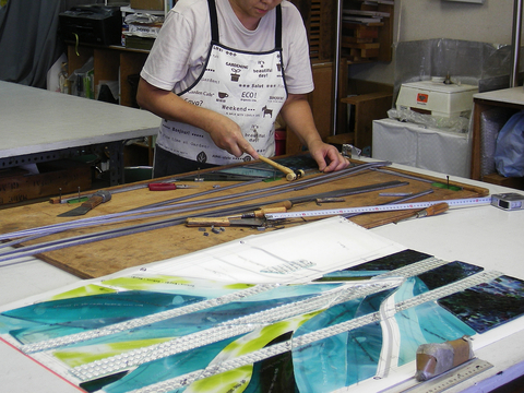 デザインの中央に三本縦に通っている、リストラルという種類の透明なガラス
